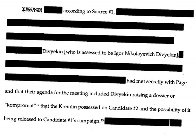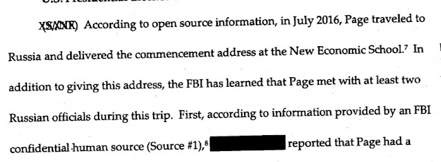 The application goes on to reference a Michael Isikoff article in Yahoo! News that described Page’s alleged activities and possible collusion by the Trump campaign with Russia. This information is treated as a separate piece of evidence in the bogus application, but was just laundered material from Steele to Isikoff.
